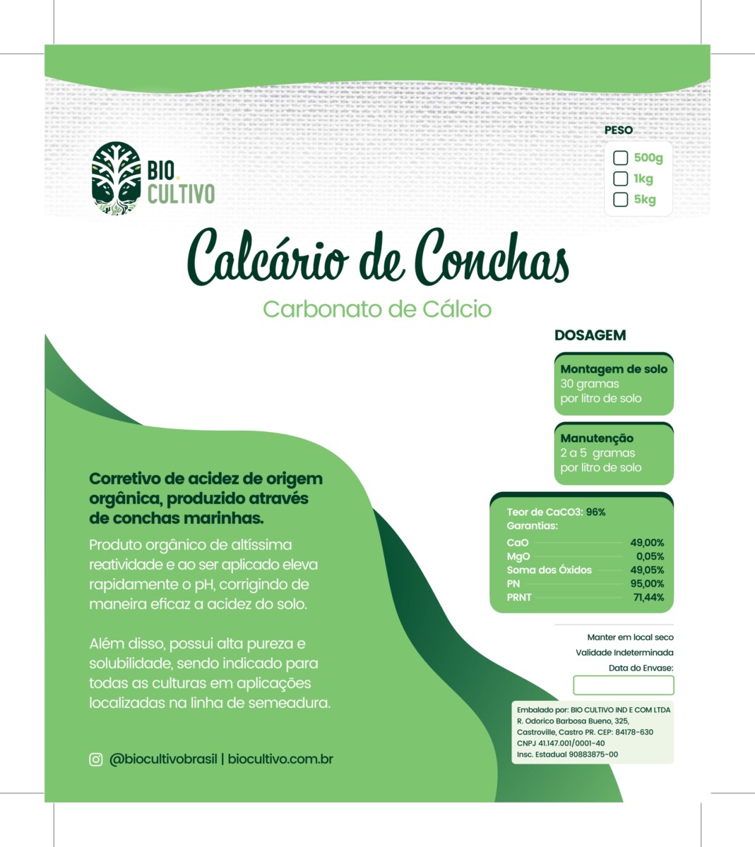 O Calcário de conchas é um corretivo de solo de reação imediata, produzido através de conchas marinhas fossilizadas, corrigindo de maneira eficaz a acidez do solo. Além disso, possui alta pureza e solubilidade, sendo indicado para todas as culturas em aplicações localizadas na linha de semeadura. O Calcário de Conchas por se tratar de um material orgânico, é um insumo recomendado para utilização em agricultura orgânica.