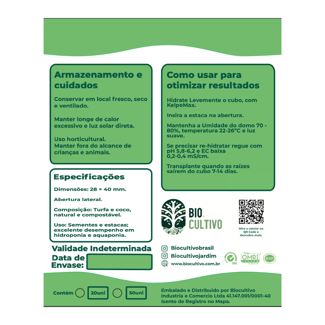 Cubos de Propagação BioCultivo – Turfa Premium e Coco (20 un)