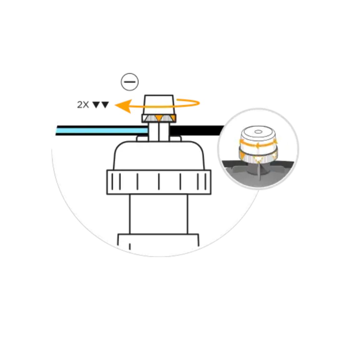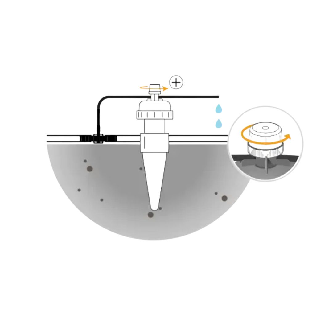 1. Gire o parafuso de ajuste no sentido anti-horário até que a água saia pelo tubo de gotejamento.