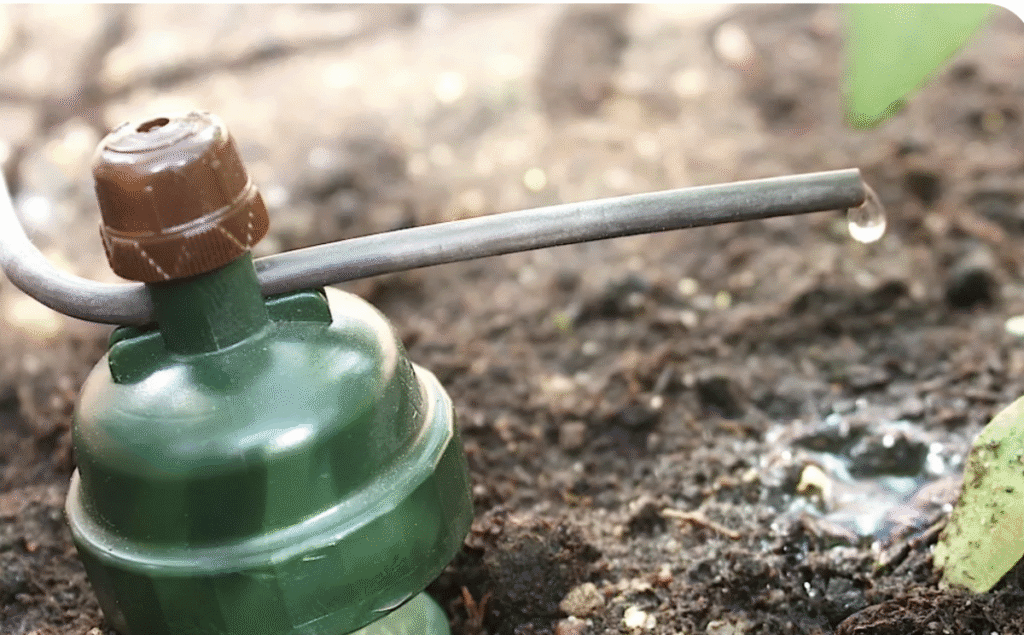 - Não se deixe enganar pela superfície seca do solo. A água se espalha no subsolo. Na maioria dos casos, apenas a área sob o tubo de gotejamento fica visivelmente úmida.