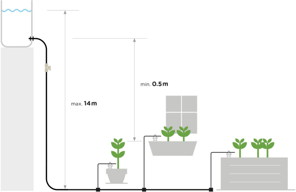 Até 250 sensores Tropf-Blumat podem ser fornecidos por um redutor de pressão.